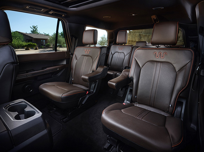 Nội thất Ford Expedition cung cấp chỗ ngồi rộng rãi cho 7 hàng khách với hàng ghế sau thích hợp cho hai người lớn theo “chuẩn Mỹ”. Trang bị ghế bọc da, ốp gỗ thật, bên cạnh khá nhiều “đồ chơi” cao cấp như loa B&O, màn hình hỗ trợ lái kiểu analog kết hợp với màn hình 4,2 inch, màn hình giải trí trung tâm 8 inch, cửa sổ trời cỡ lớn. Cung cấp điểm truy cập WiFi, tính năng khởi động động cơ từ xa, sưởi vô lăng, kiểm soát tiếng ồn chủ động và hơn nữa.
