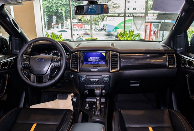 Khu vực khoang lái xe khá hiện đại, tích hợp nhiều tính năng tối ưu hóa cho người điều khiển. Tuy nhiên, chất liệu phần bảng taplo chủ yếu sử dụng nhựa mềm giả da kết hợp với những đường chỉ khâu màu cam nổi bật và logo Wildtrak xuất hiện ở bên phụ.