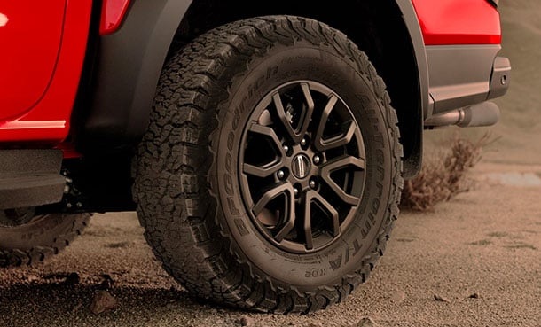 Bộ la-zăng hợp kim 17 inch hầm hố dành cho đường địa hình lắp với lốp xe BF GoodRich All-Terrain K02 hiệu năng cao danh tiếng (kích thước 285/70 R17). Dù vượt núi đồi hay chạy tốc độ cao, đều đáp ứng trong mọi điều kiện..