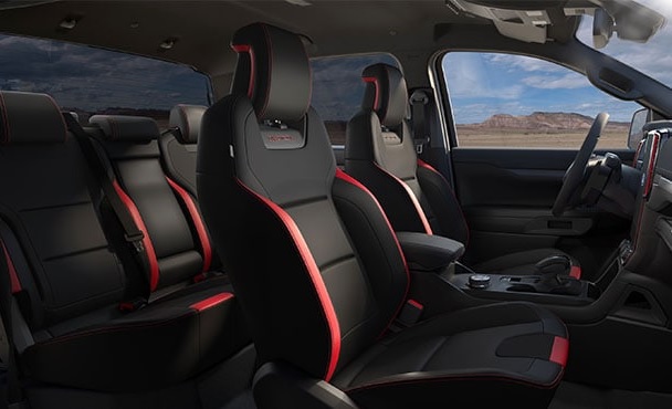 Lấy cảm hứng từ giải đua xe địa hình danh tiếng Baja Racing, ghế ngồi xe Raptor 2023 có thiết kế ôm trọn người lái, giúp lái xe có tư thế chắc chắn khi ôm cua hoặc tiếp đất. Các đường chỉ khâu độc đáo và kết hợp với da lộn giúp tối ưu sự thoải mái và tăng tính thẩm mỹ.
