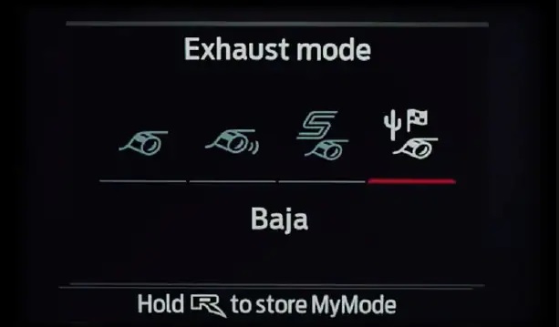Chọn gầm theo cách bạn muốn. Từ chế độ im lặng với tiếng ồn động cơ ít nhất, chế độ bình thường, chế độ thể thao và chế độ Baha khiêu dâm. Bạn có thể chọn điều chỉnh âm thanh ống xả ở nút chụp ống xả trên vô lăng.