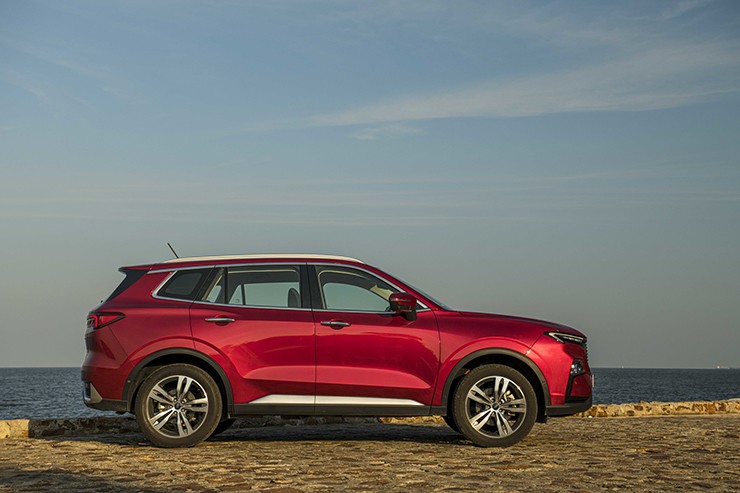 Thân xe Ford Territory 2024 có nhiều đường gân dập nổi chạy dọc, nhấn mạnh vẻ đẹp cơ bắp đặc trưng trên các dòng SUV. Xe sử dụng bộ la-zăng hợp kim 5 chấu kép với kích thước từ 18 - 19 inch, tùy phiên bản, kèm bộ lốp 235/55 và 235/50 tương ứng.