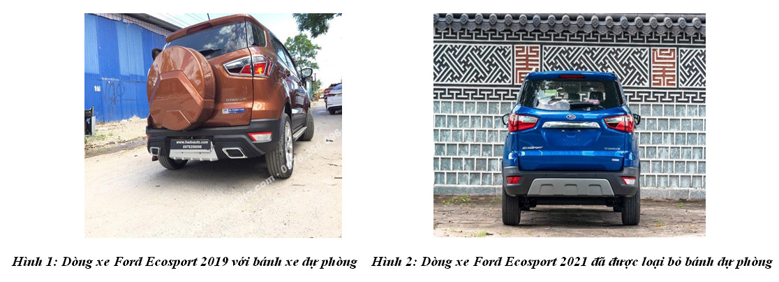 • Điểm khác biệt đầu tiên của dòng xe Ford Ecosport 2021 so với các dòng xe khác là xe Ford Ecosport đã bỏ đi bánh dự phòng phía sau xe, có nhiều đánh giá rằng khi bỏ đi bánh xe dự phòng sẽ mất đi tính thể thao của dòng xe này.